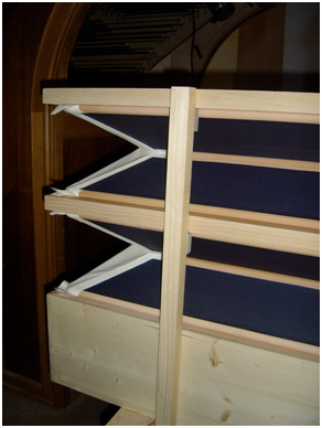 Les premières octaves de la Trompette et du Basson ont des boîtes en tilleul tourné.